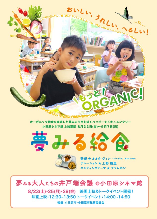 オーガニック給食を実現した夢みる市民を描くハッピードキュメンタリー、オオタ ヴィン監督の「夢みる給食」の上映会が、小田原シネマ館にて開催されます。