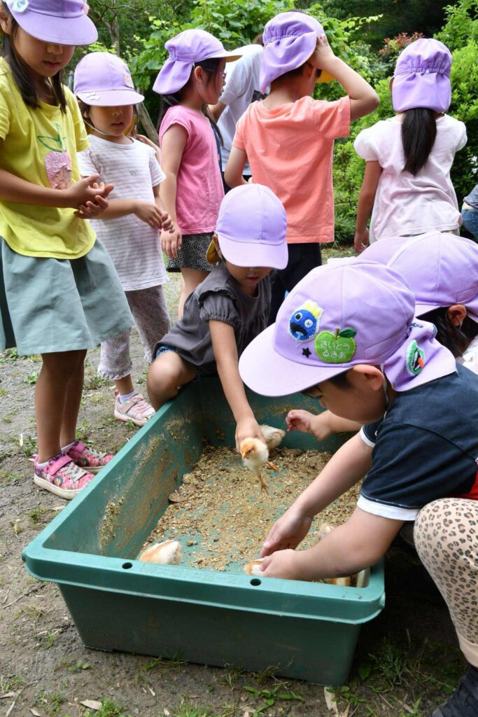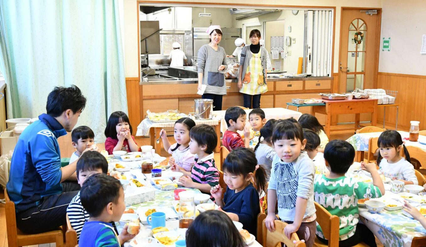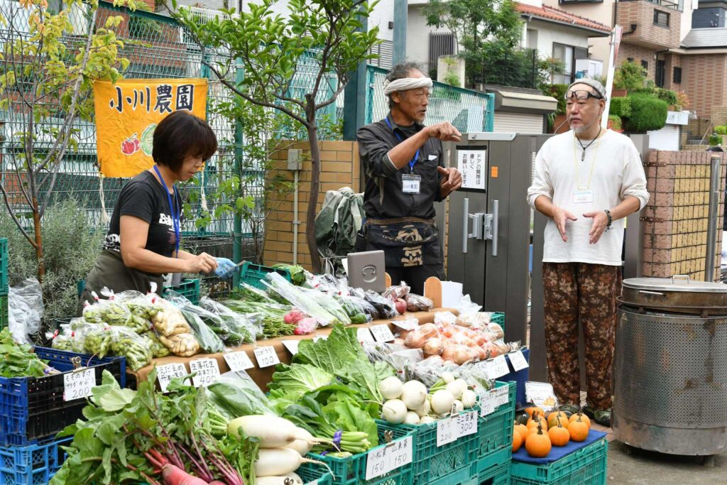 くらき永田保育園は、横浜市にて地産の野菜を保育園の給食として使用しているパイオニアです。給食の食材は直接契約した農家さんや魚屋さんから仕入れています。 そんな新鮮なお野菜などを家庭でも活用できるように玄関ホールでは野菜や魚の出張販売が行われたり、また、地域の絵本専門店なども定期的に開催されるブックマルシェなどは保護者だけでなく地域の皆さんからも大好評です。